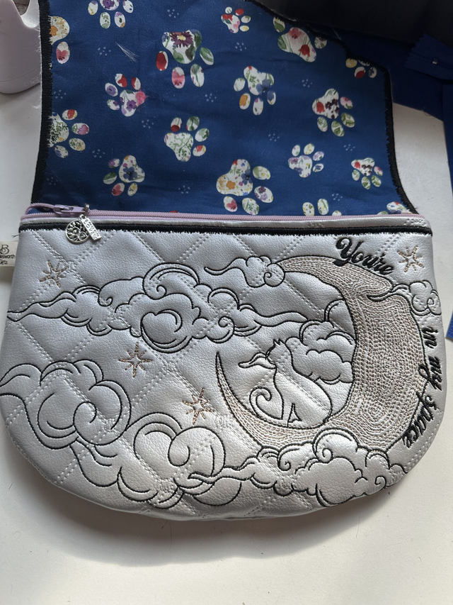 bag has a zipped main pocket and a decorated slip pocket on the back. It is fully lined in bright coloured fabric. The large is supplied with a crossbody strap, whilst the small has a wristlet, unless otherwise requested. Available in a choice of colours - provide details at checkout or via email.