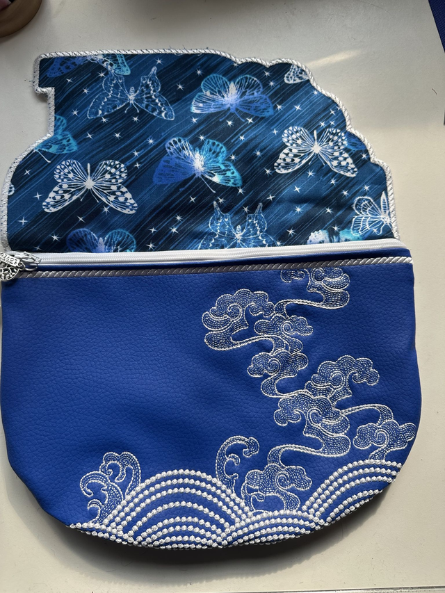 bag has a zipped main pocket and a decorated slip pocket on the back. It is fully lined in bright coloured fabric. The large is supplied with a crossbody strap, whilst the small has a wristlet, unless otherwise requested. Available in a choice of colours - provide details at checkout or via email. Large: 25 x 18cm Small: 17 x 12 cm Other designs available see other listings