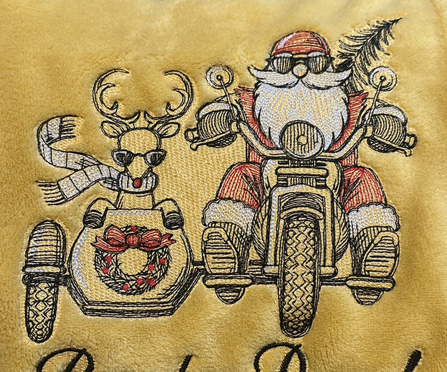Blanket -Reindeer Down - Santa Motorbike and Sidecar - Embroidered Large Blanket