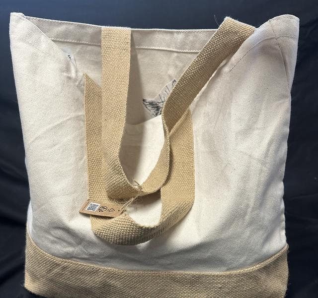 Large Heavy Cotton Tote Bag with Laminated Jute bottom. 59cm long straps.